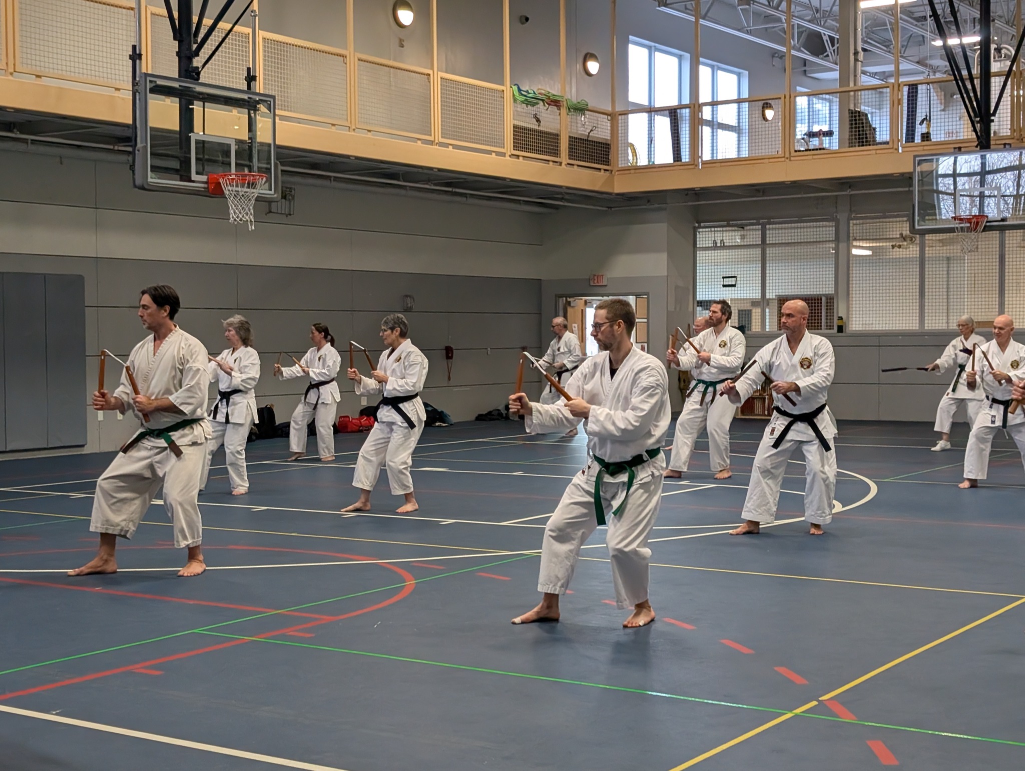 O’Malley sensei, who has trained with many of the style’s most prominent masters, has travelled to Okinawa to train close to 40 times. His seminar focused on the basic techniques of Matsubayashi-ryu, as well as fighting applications and traditional weapons.