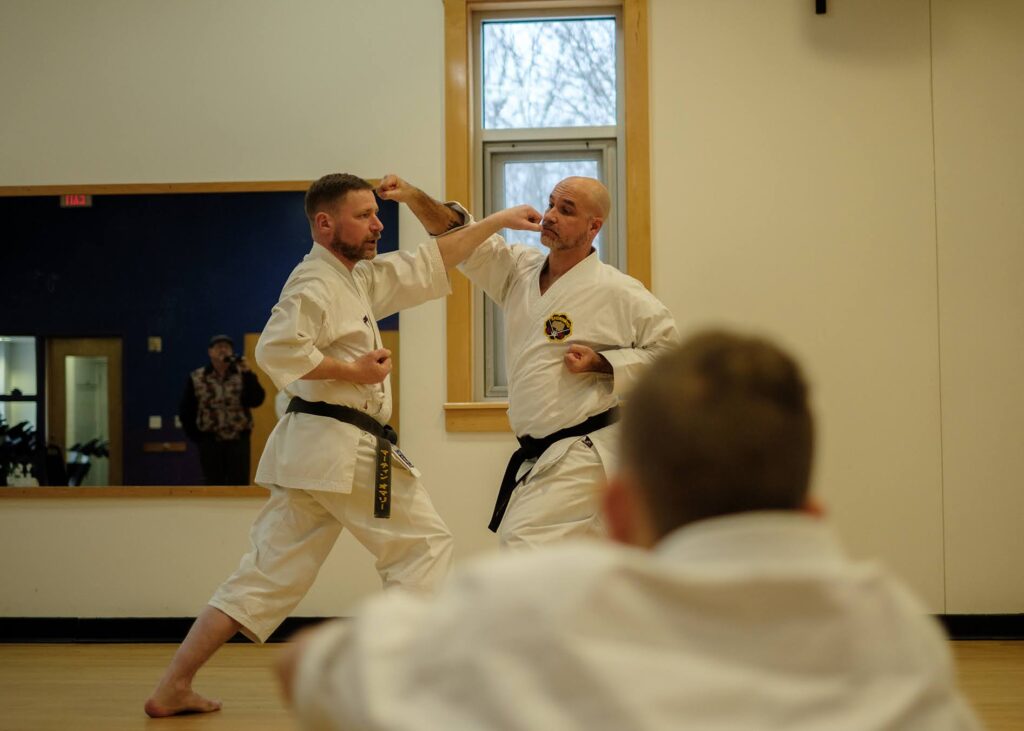 The Rockland Matsubayashi-Ryu Karate Dojo, a traditional karate dojo based at the Penobscot Bay YMCA, completed its very first International Karate Seminar this past Saturday and Sunday, December 6 & 7. Martin O’Malley Sensei, a fifth-degree black belt from Finland, led the seminar. The dojo, led by David Troup, also a fifth-degree black belt, has been offering the Okinawan karate style in midcoast Maine since 2006. Thirty participants, including many Pen Bay YMCA members, attended. Practitioners travelled in from Finland, Germany, Ireland, Canada, and Okinawa, as well as from many parts of the US, including Ohio, North Carolina, Minnesota, and Massachusetts.