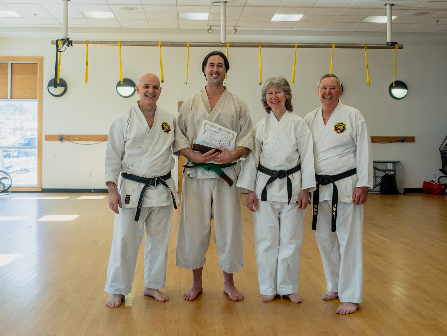 Congratulations to Chris Mariner, Chris Felicetti, and Pearson Snyder on their hard work leading to their successful testing for 二級 (nikyu or Brown Belt). They have all three put in the time and the training, and it shows! Keep coming through that dojo door!